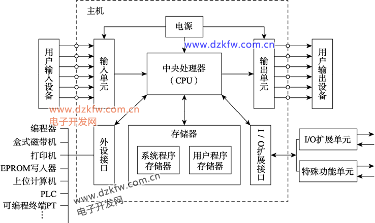 一个基本单元就是一台完整的PLC,可以实现各种控制。控制点数不符合需要时,可再连接扩展单元,扩展单元不带CPU。基本单元和若干扩展单元可组成较大的系统。