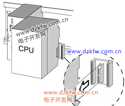 (1)如图3所示,将总线连接器插入 CPU 和SM/FM/CP/IM。除CPU 外,每个模块都带有一个总线连接器。在插入总线连接器时,必须从CPU 开始。拔掉装配中“最后一个”模块的总线连接器,因为“最后一个”模块不接受总线连接器。