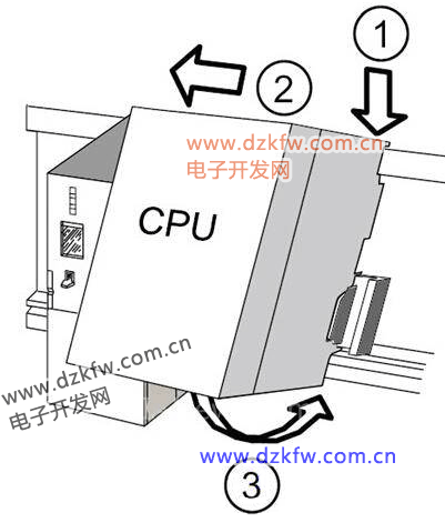 从机架左边开始,按照“先电源模块、再CPU、最后SM/FM/CP/IM模块”的顺序,将模块挂靠在导轨上。具体步骤如下:
