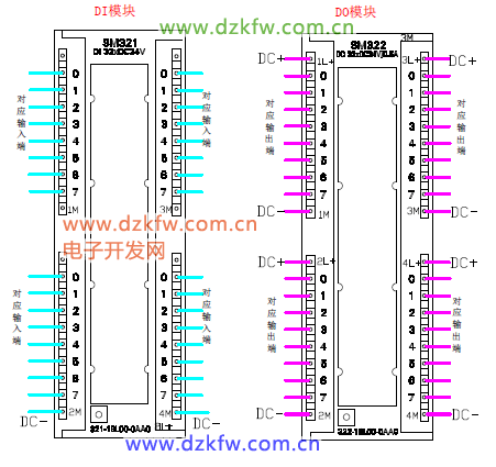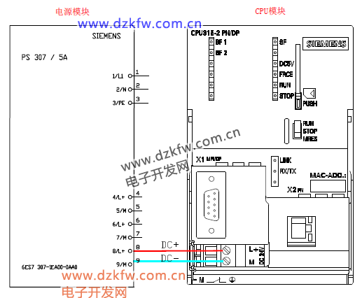 西门子S7-300常用模块接线图CPU315+PS307(电源模块)+SM321(DI模块)+SM322(DO模块)