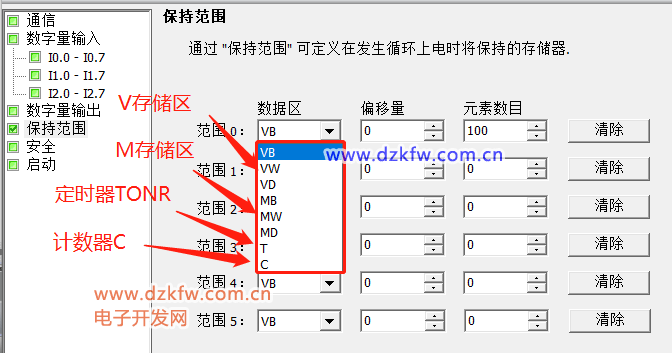 我们如果在保持范围中配置了这些参数所在存储区区域的断电保持功能,PLC断电再上电后,这些参数的值还会保持断电前的值,这样就可以避免上述例子所产生的问题。