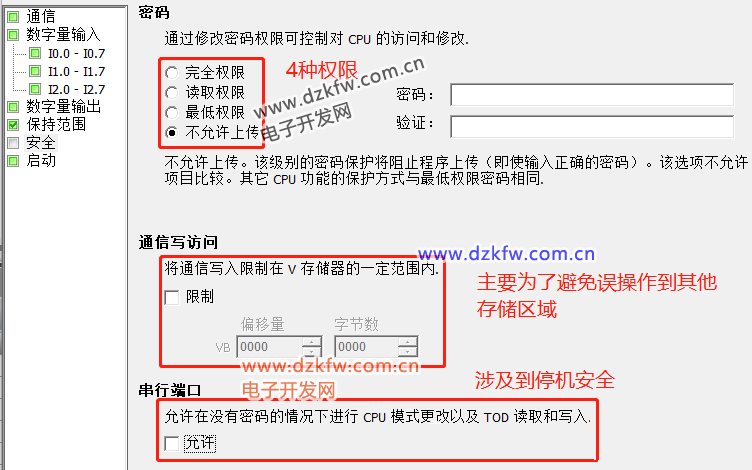 安全中的密码配置主要为保护用户知识产权而设计,如果你写的这套PLC程序花费了很大精力,有些算法是你独有的,不希望被别人窃取。那就可以按照重要程度来选择不同的权限进行加密。