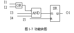 功能块图是一种类似于数字逻辑电路的编程语言,用类似与门、或门的方框来表示逻辑运算关系,方块左侧为逻辑运算的输入变量,右侧为输出变量,输入端、输出端的小圆点表示“非”运算,信号自左向右流动。类似于电路一样,方框被“导线”连接在一起。图1-7所示为功能块图示例。