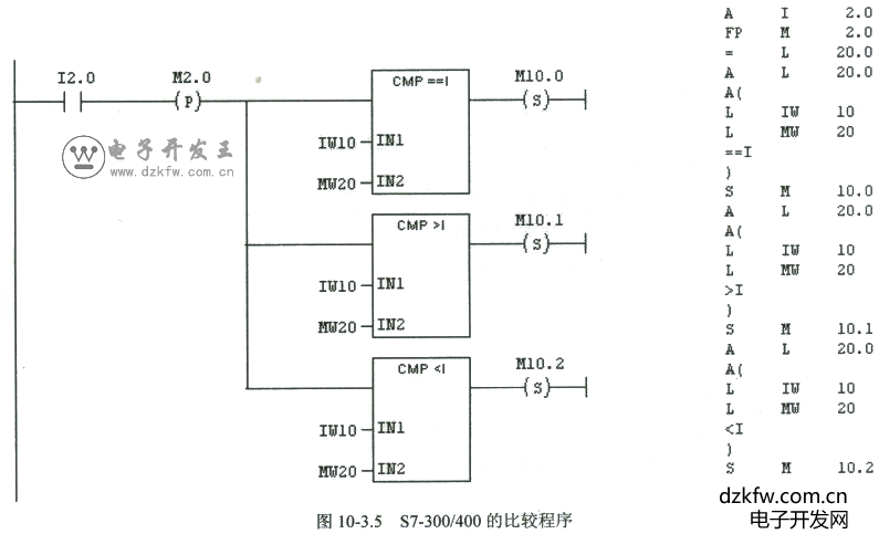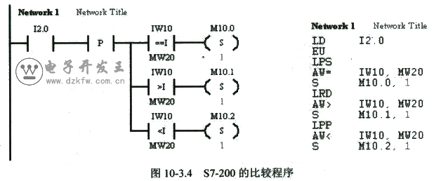 ②如果IW10 - MW20,标志Ml0.0为“l”;IW10>MW20,Ml0.1为“1”;IW10<MW20,M10.2为“1”;