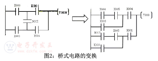 二,接点应画在水平线上,不应画在垂直线上,如下图(a)中的接点X005与其它接点间的关系不能识别。对此类桥式电路,应按从左到右,从上到下的单向性原则,单独画出所有的去路。如图(b)所示: