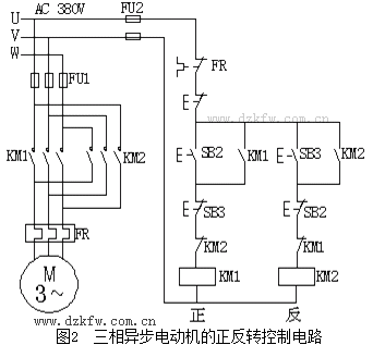 利用两个或多个常闭触点来保证线圈不会同时通电的功能成为“互锁”。三相异步电动机的正反转控制电路即为典型的互锁电路,如图2所示。其中KMl和KM2分别是控制正转运行和反转运行的交流接触器。