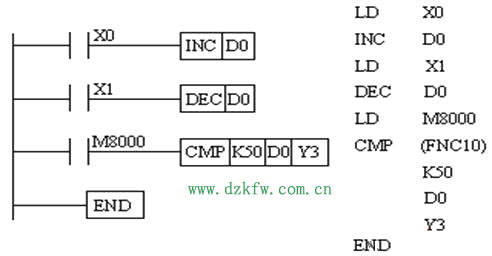 ADD指令是将指定的源元件中的二进制数相加,结果送到指定的目标元件中去。每个数据的最高位作为符号位(0为正,1为负),运算是二进制代数运算。
