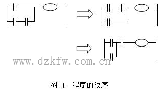 即使在动作相同的程控电路中,借助于触点的构成方法出可简化程序与节省程序步数。