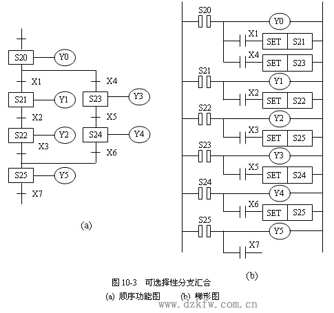 PLC步进指令,可选择分支汇合