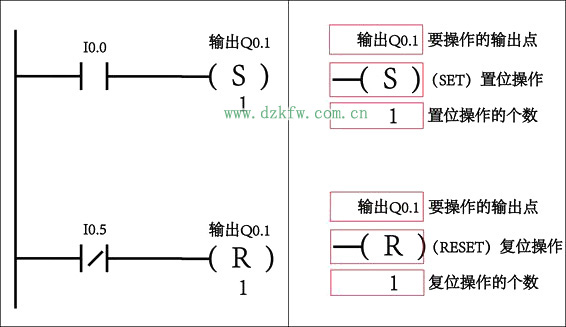 如图1,是我们上一节课讲的西门子s7200 PLC的,启动,保持,停止的控制电路和程序,我们知道右边的这个程序,它是用单纯的常开和常闭的位操作指令编写的,可以完成自锁的功能。大家不太明白的再看一下上一节。但除了以上介绍的,这个自锁功能还能用我们今天讲的置位和复位操作来完成。程序如下。