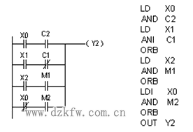 (a)梯形图 (b)语句表(一) 图 ORB指令的应用
