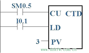 LD SM0.5,LD I0.1,CTD C50,3,特殊继电器SM0.5:0.5s闭合/ 0.5s断开。