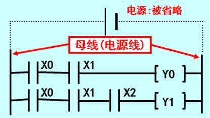 ②在控制电源母线内连接各触点和输入输出 继电器等要素