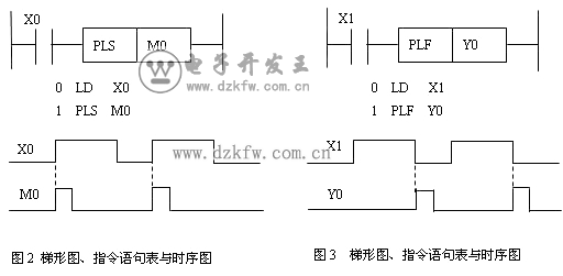 脉冲微分指令主要用于检测输入脉冲的上升沿与下降沿,当条件满足时,产生一个很窄的脉冲信号输出。有PLS、PLF两条指令。