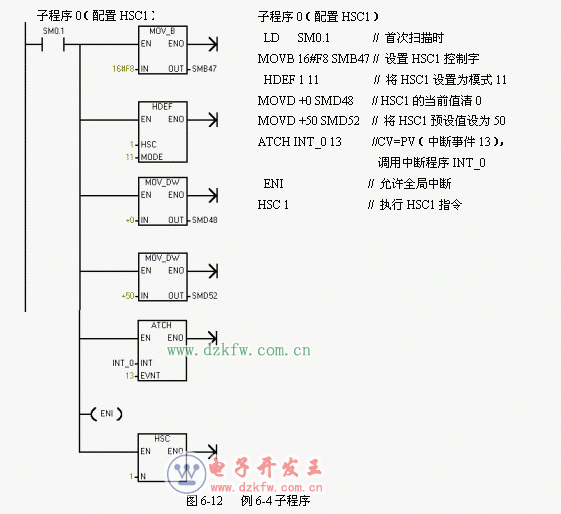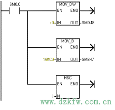 (3)执行HDEF指令,设置HSC的编号(0-5),设置工作模式(0-11)www.dzkfw.com.cn。如HSC的编号设置为1,工作模式输入设置为11,则为既有复位又有起动的正交计数工作模式。