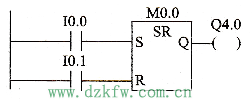 如果在输入端I0.0的信号状态为“1”,而输入端I0.1的信号状态为“0”,则存储器位M0.0被置位以及输出Q4.0=“1”。反之如果输入I0.0的信号状态为“0”,而I0.1的信号状态为“1”,则存储器位M0.0被复位以及输出Q4.0=“0”。