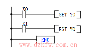 SET指令的操作目标元件为Y、M、S。而RST指令的操作元件为Y、M、S、D、V、Z、T、C。对同一编程元件,如例中Y0等,SET、RST指令可以多次使用,且不限制使用顺序,以最后执行者有效。