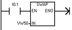功能:使能输入EN有效时,将输入字IN的高字节与低字节交换,结果仍放在IN中 IN:VW, IW, QW, MW, SW, SMW, T, C, LW, AC。数据类型:字 |