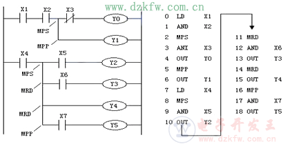 这三条指令是无操作元件指令,都为一个程序步长。这组指令用于多输出电路。可将连接点先存储,用于连接后面的电路