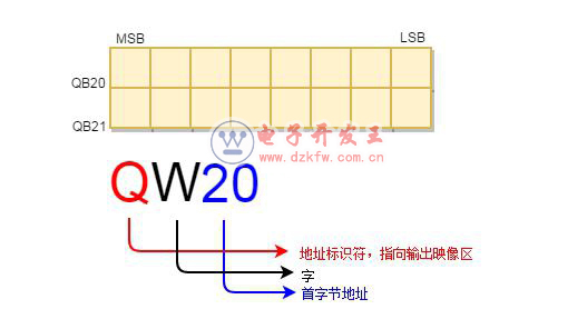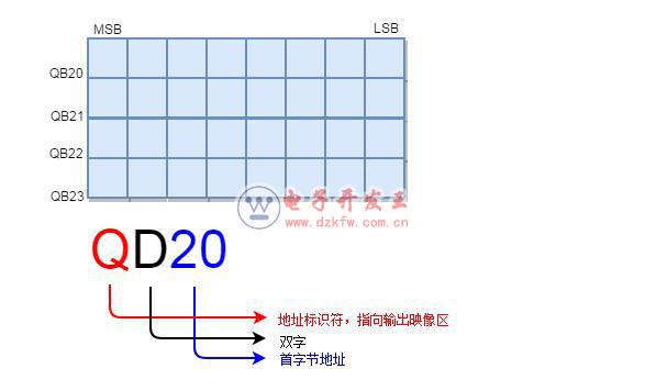 寻址方式:地址标识符+D+首字节地址,其中,"D"代表双字。