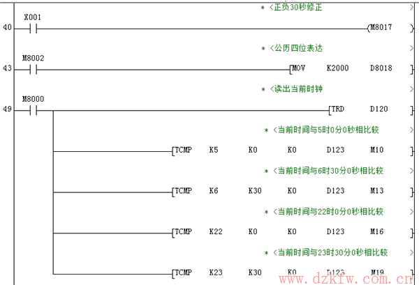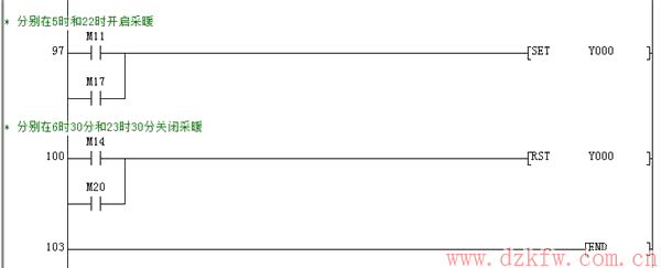 利用手头的三菱FX1N系列plc学习时钟控制,主要是利用三菱plc的时钟写入与读出指令 ,对室内的采暖设备实现定时开启与关闭。本例 控制即是实现对室内的采暖设备在早5时开启,6时30分关闭,晚22时开启,23时30分关闭。