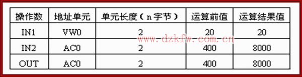 *I,整数乘法指令。使能输入有效时,将两个单字长(16位)的符号整数IN1和IN2相乘,产生一个16位整数结果OUT。