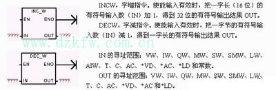 DECD,双字减指令。使能输入有效时,把双字长的有符号输入数(IN)减1,得到双字长的有符号输出结果OUT。