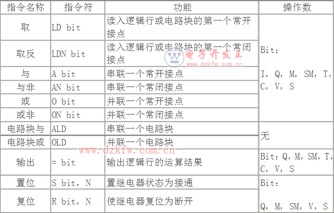 表 S7-200系列的基本逻辑指令