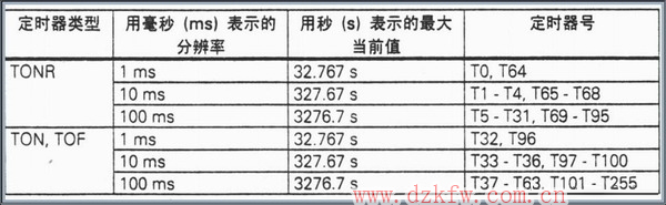TON、TONR、TOF定时器有三个分辨率。这些分辨率与定时器号有关。