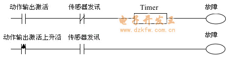以上编程并不复杂,但为此使用两个定时器总觉得有点“奢侈”,特别是在功能块数目不多的小型PLC,如果要监测的东西多了,定时器就会不够用。