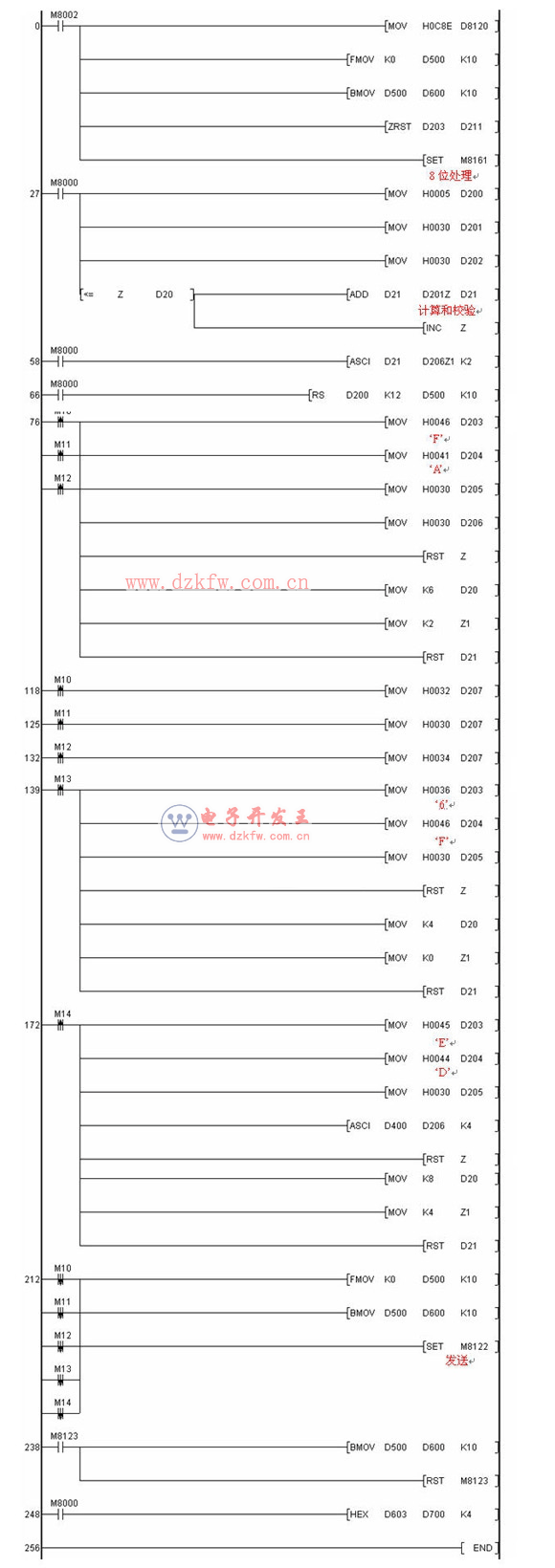 三菱FX系列PLC在进行计算机链接(专用协议)和无协议通讯(RS指令)时均需对通讯格式(D8120)进行设定。其中包含有波特率、数据长度、奇偶校验、停止位和协议格式等。在修改了D8120的设置后,确保关掉PLC的电源,然后再打开。