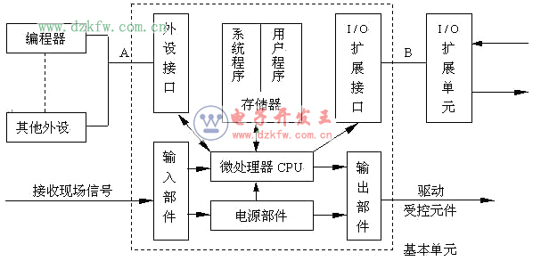 1. plc的硬件结构可编程控制器主要由中央处理单元(CPU)、存储器(RAM、ROM)、输入输出单元(I/O)、电源和编程器等几组成。PLC硬件结构如图1所示: