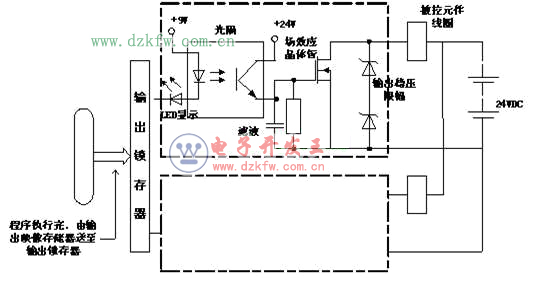 输出端子有两种接法:一种是输出各自独立,无公共点:各输出端子各自形成独立回路。一种为每4∽8个输出点构成一组,共有一个公共点:在输出共用一个公共端子时,必须用同一电压类型和同一电压等级,但不同的公共点组可使用不同电压类型和等级的负载,且各输出公共点之间是相互隔离的。输入输出端子处理的过程如下: