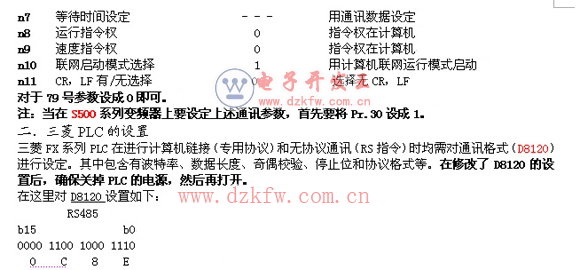 PLC和变频器之间进行通讯,通讯规格必须在变频器的初始化中设定,如果没有进行初始设定或有一个错误的设定,数据将不能进行传输。
