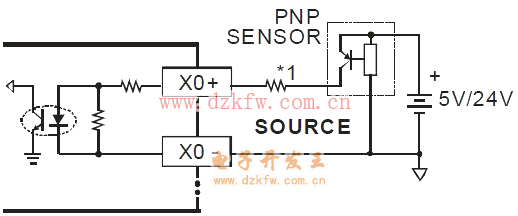 2、PNP型传感器:PLC侧应采用源性输入方式。