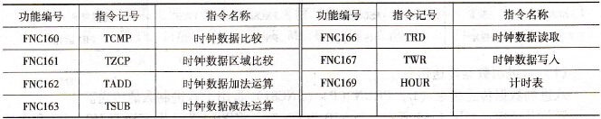共有7条时钟运算类指令,指令的编号分布在FNC160 - FNC169之间。时钟运算指令是对时钟数据进行运算和比较,对PLC内置实时时钟进行时间校准和时钟数据格式化操作。时钟运算指令如表4-16所示。