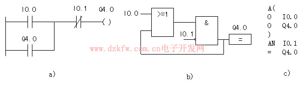 最基本的标准指令有三条,分别为A、O、=。其中A对应继电器控制线路中的串联连接,O对应继电器控制线路中的并联连接,=则对应相对应继电器控制线路中的线圈输出。A与O均对应控制线路中的常开触头。