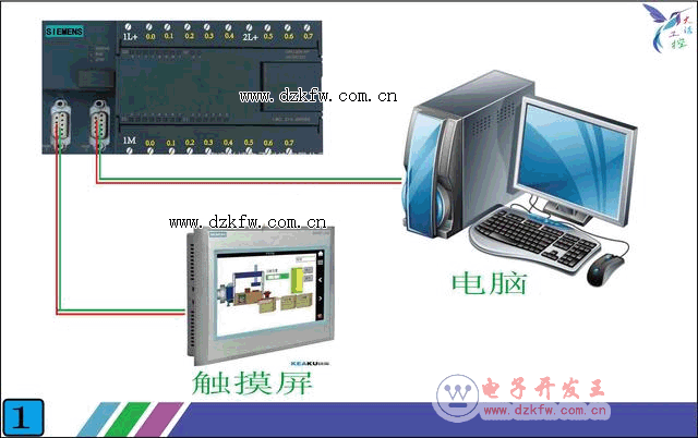 如下面的图1,当我们把触摸屏和PLC连接起来以后,在触摸屏上就能看到我们想看的数据了。除了数据还能通过触摸屏控制现场设备上的各种被控对象。比如我们在触摸屏上组态一个开关,只要触摸屏上点击一下这个开关,就可以让现场设备上的一个电机启动。