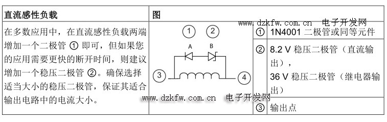 开关直流感性负载的晶体管或继电器输出的典型抑制电路见表1所示: