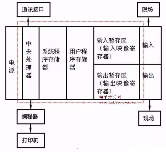 PLC的硬件主要由中央处理器(CPU)、存储器、输入单元、输出单元、通信接口、扩展接口电源、编程器及软件等部分组成。其中,CPU是PLC的核心,输入单元与输出单元是连接现场输入/输出设备与CPU之间的接口电路,通信接口用于与编程器、上位计算机等外设连接。