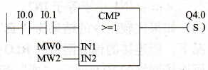CMP?I(整型数比较)指令能与正常的触点连接使用。它可以放置在正常触点允许放置的任何位置。IN1和IN2根据所选择的比较指令类型进行比较。