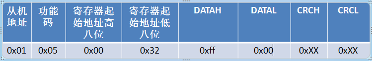 1)描述:写单个线圈,位操作,只能写一个,写0xff00表示设置线圈状态为ON,写0x0000表示设置线圈状态为OFF