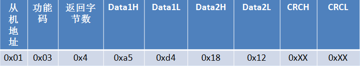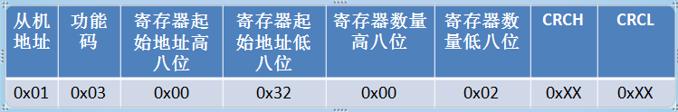 从机地址0x01,保持寄存器起始地址0x0032,读2个保持寄存器