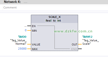 很多PLC都集成了模拟量信号值与工程量值的转换指令/函数,比如S7-1200 系列PLC,可以使用指令SCALE_X和NORMAL_X来完成转换。