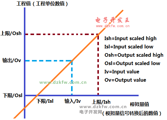 其实,模拟量信号值和对应的工程量值之间成正比关系,有一个通用的转换公式。