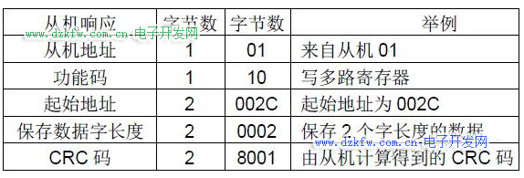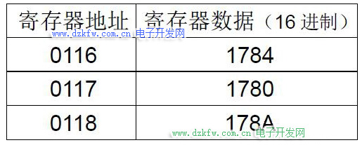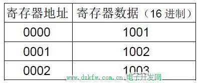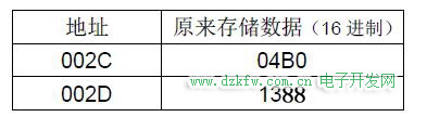 例如:主机要把0064,0010保存到地址为002C,002D的从机寄存器中去(从机地址码为01)。通讯数据保存结束后,地址为002C/002D的PDM表内存储信息为: