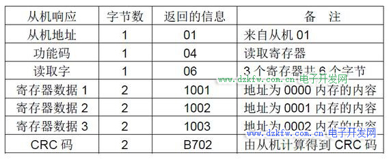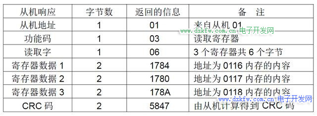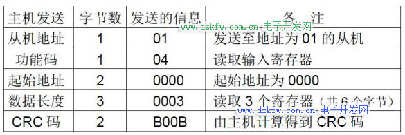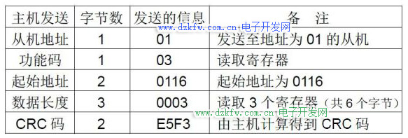 例如:主机要读取地址为01,起始地址为0116的3个从机寄存器数据。