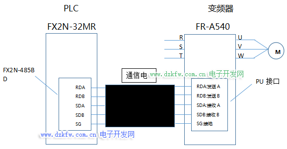 1、单台变频器与PLC的RS-485通信连接