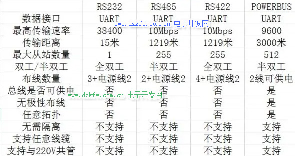 2、RS-485与RS-422的不同还在于其共模输出电压是不同的,RS-485是-7V至+12V之间,而RS-422在-7V至+7V之间,RS-485接收器最小输入阻抗为12k欧姆,RS-422是4k欧姆。RS-485满足所有RS-422的规范,所以RS-485的驱动器可以用在RS-422网络中应用。