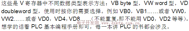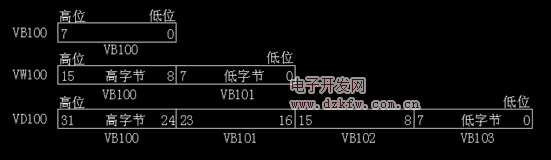 3)、无论V寄存器还是M寄存器,里面的不同数据类型(VB、VW、VD、MB、MW、MD)都是基于寄存器内存总字节地址为偏移地址。